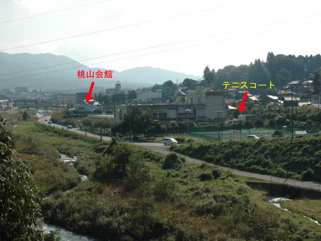 桃山会館は、建物の向こう側で200m程離れている