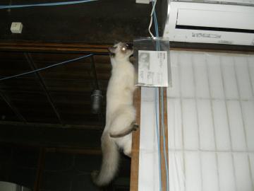玄関の下駄箱の上で、ご主人様の帰りを待つ? 相変わらずMacintoshG5に座って邪魔をするr